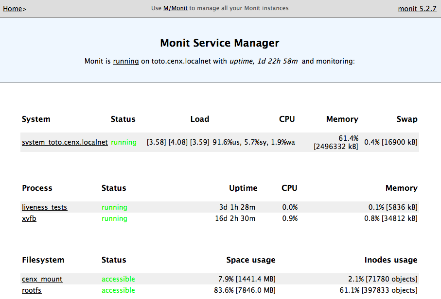 Finally, we deployed M/Monit as a means to consolidate statistics from all of the monit services running on all of our systems.